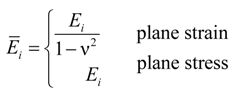 | Ē1, Ē2 | Modulus of elasticity in upper arm, and lower arm, accounting for plane stress and plane strain effects |