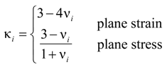 Dundurs’ elastic mismatch parameters, where α measures the mismatch in the in-plane tensile modulus across the interface and β measures the mismatch in the in-plane bulk modulus, are given as: