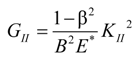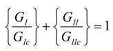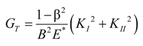 The total energy release rate for crack advance in the interface, GT, can also be linearly partitioned into its Mode I and Mode II components, using the following relationship: