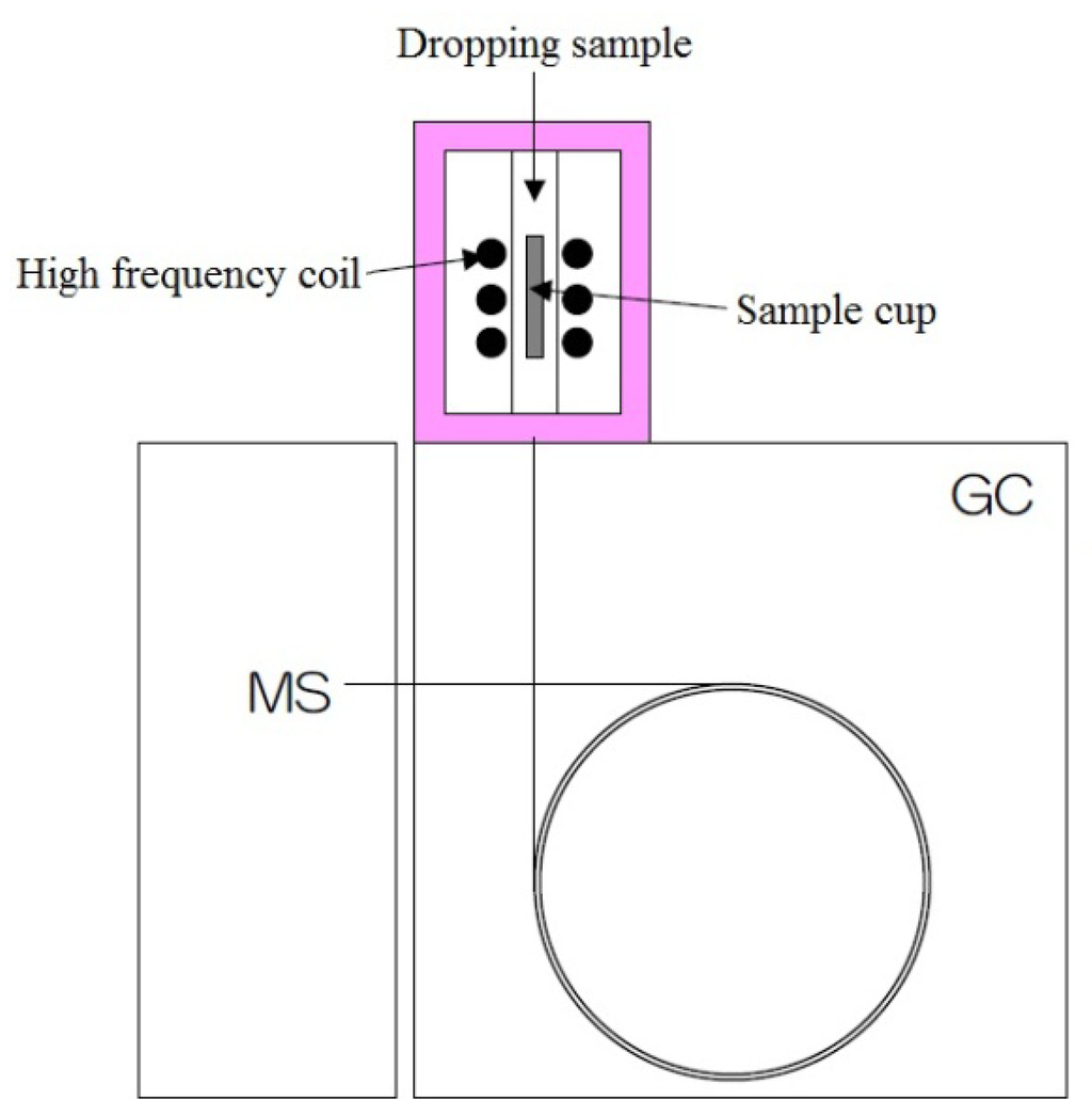 The analysis method involves putting the sample in the inactivated sample holder of the microfurnace, dropping the sample holder into the reactor core, which is wrapped with high frequency coils, and filled with helium as the carrier gas using a switch, and then pyrolyzing it. The pyrolysis results are rather stable due to the comparatively low dispersion temperature changes due to the sample holder’s small capacity [10].
