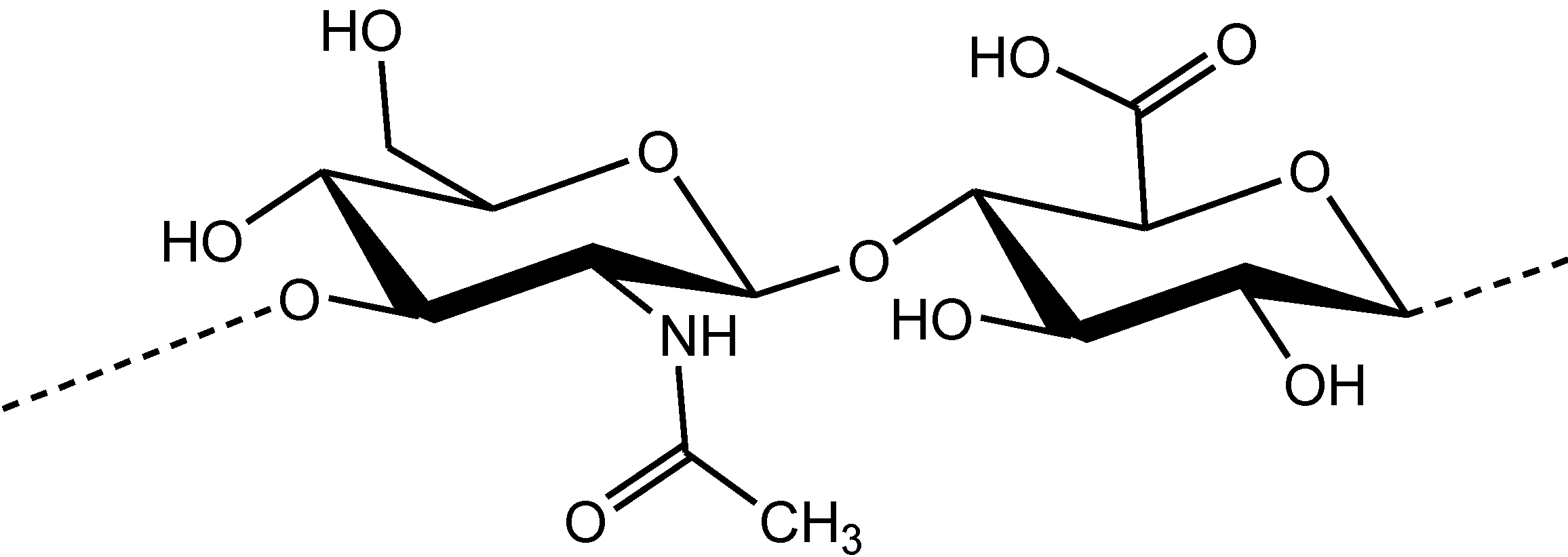 Chemical structure of the disaccharide unit of hyaluronic acid.