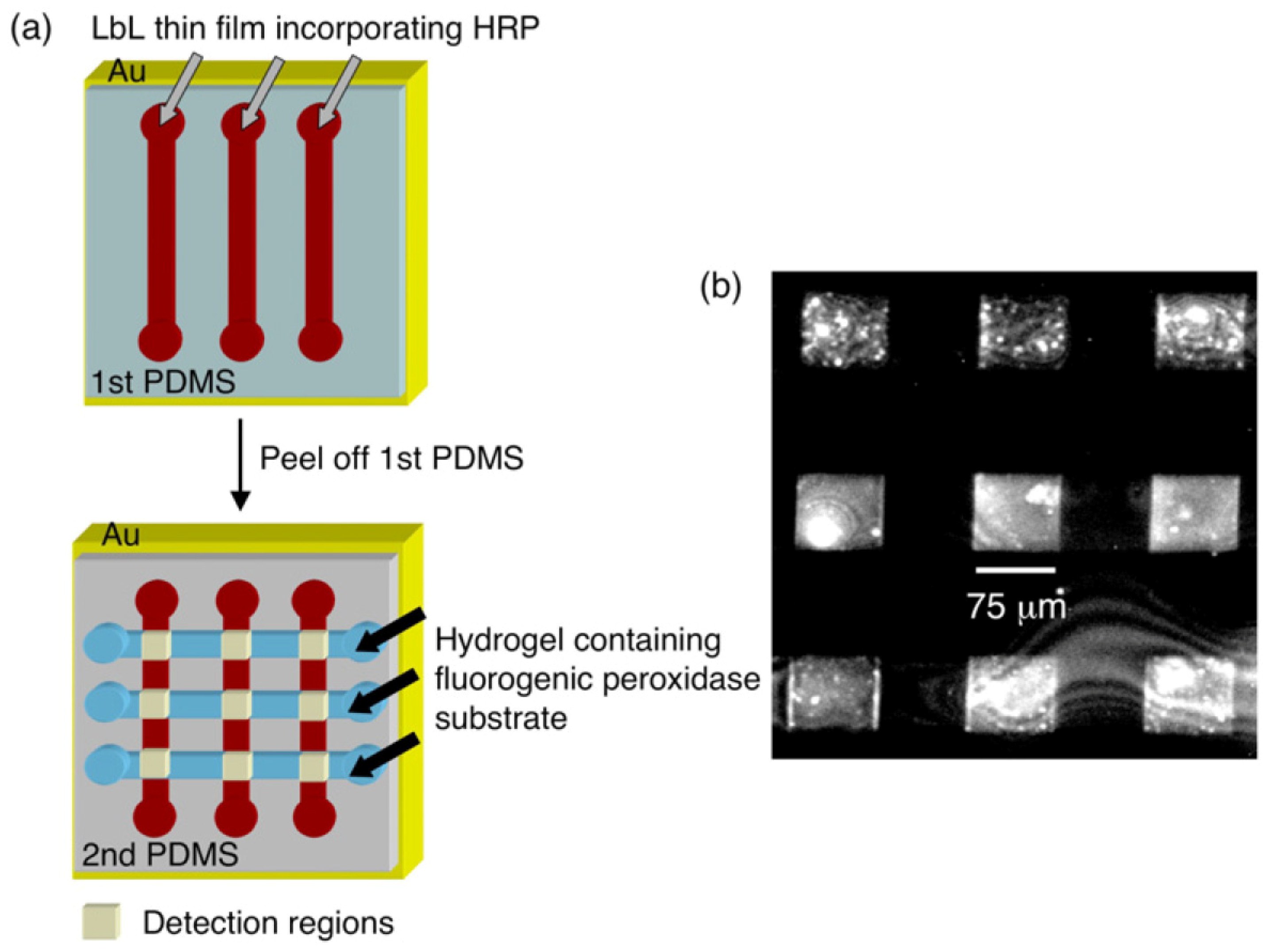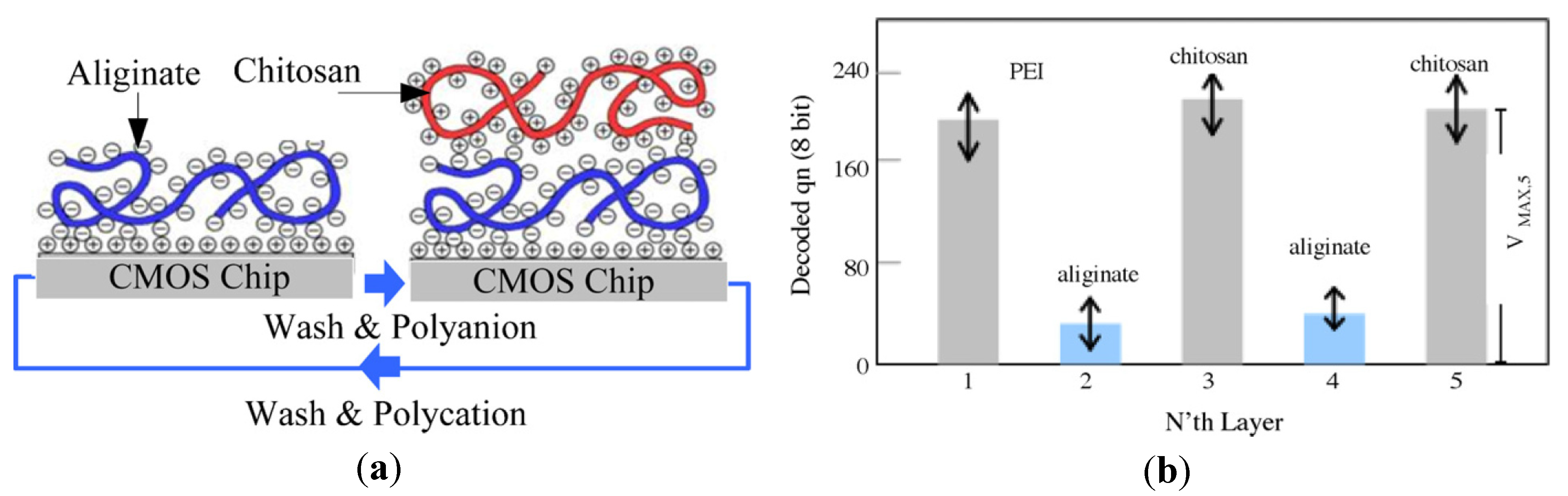 - Wang, Y.; Liu, Y.; Cheng, Y.; Kim, E.; Rubloff, G.W.; Bentley, W.E.; Payne, G.F. Coupling electrodeposition with layer-by-layer assembly to address proteins within microfluidic channels. Adv. Mater. 2011, 23, 5817–5821. [Google Scholar] [CrossRef]