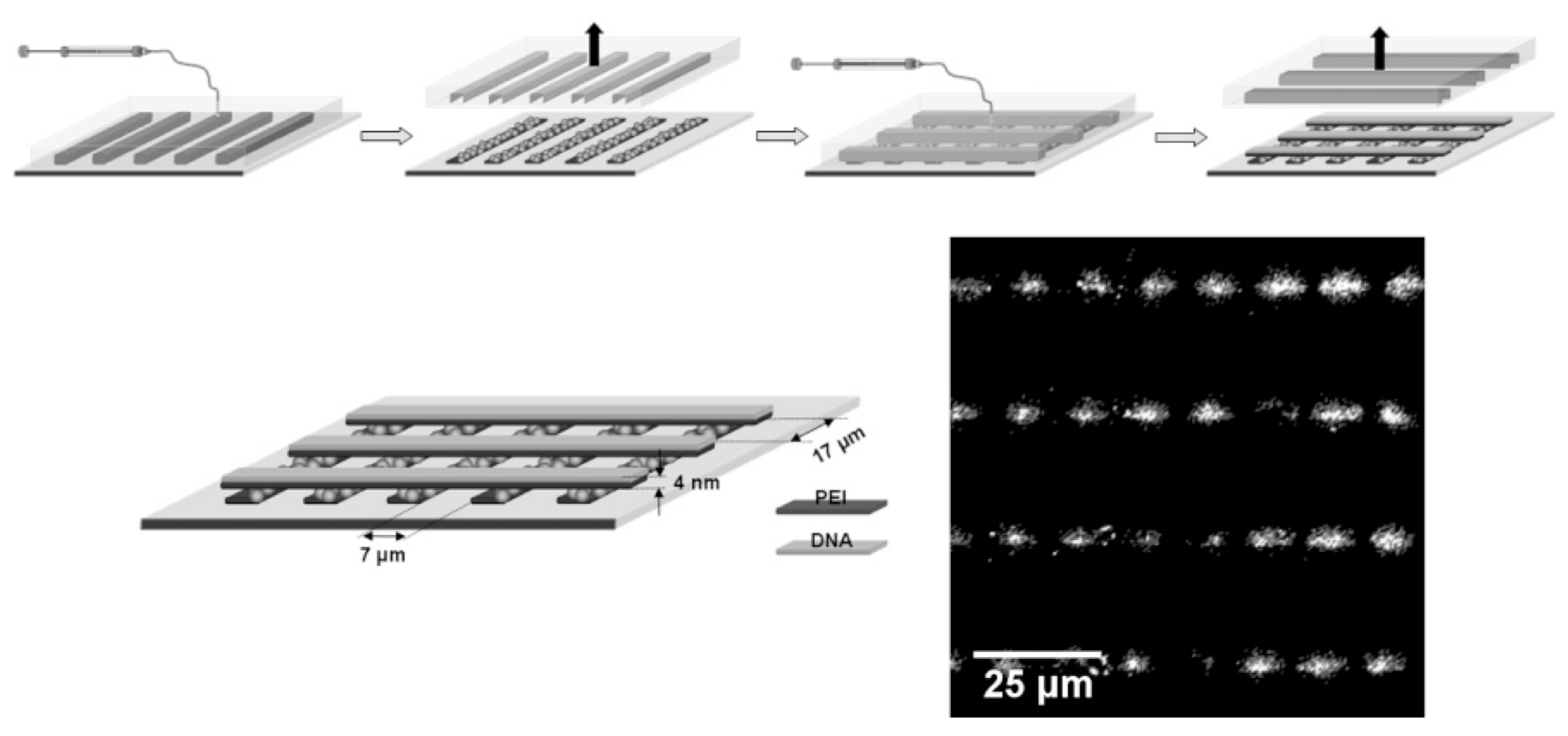- Dootz, R.; Nie, J.; Du, B.; Herminghaus, S.; Pfohl, T. Raman and surface enhanced raman microscopy of microstructured polyethylenimine/DNA multilayers. Langmuir 2006, 22, 1735–1741. [Google Scholar] [CrossRef]