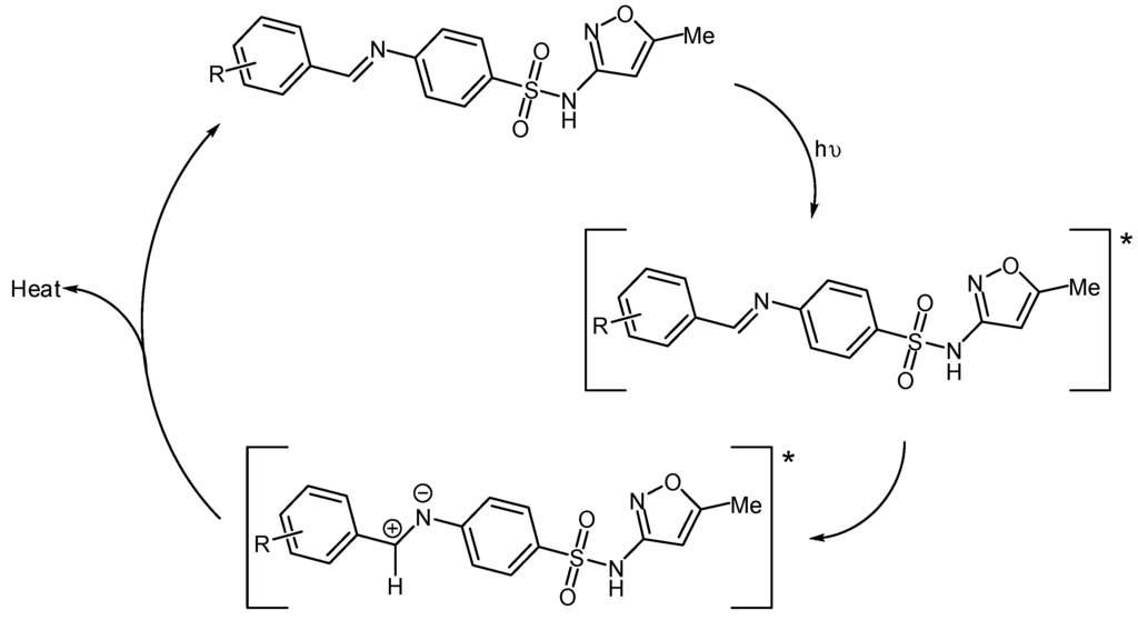 A number of UV-stabilizers are known in which the mode of action is highly dependent on the direct UV absorption, radical scavengers, peroxide decomposers, excited state quenchers and light screeners, for example [6,7,8,9,10,11,12,13,14,15]. Recently, we have reported the use of various additives to increase photostabilizing efficiency and photochemical stability of polymeric materials [16,17,18,19] as part of our interest in the synthesis of polymeric materials with interesting applications [20,21,22]. In this paper, we report the successful use of Schiff’s bases derived from sulphamethoxazole as UV-stabilizers in the photostabilization of polyvinyl chloride (PVC).