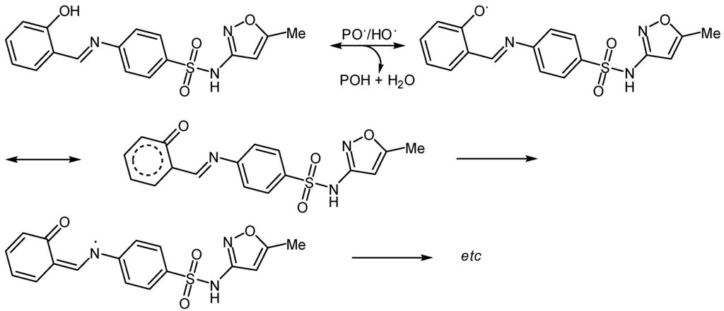 Finally, the hydroxyl group in Schiff’s base 1 could act as radical scavenger in the PVC photostabilization process (Scheme 5).