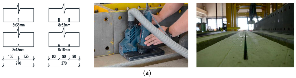 - Barros, A.; Ferreira, D.; Fortes, A.; Dias, S. Assessing the effectiveness of embedding CFRP laminates in the near surface for structural strengthening. Constr. Build. Mater. 2006, 20, 478–491. [Google Scholar] [CrossRef]