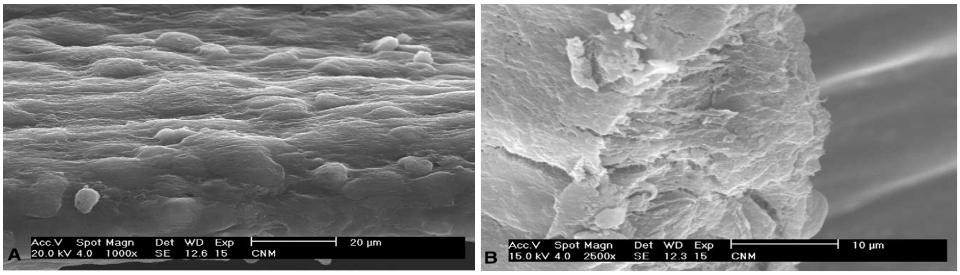 - Ma, Z.; Kotaki, M.; Yong, T.; He, W.; Ramakrishna, S. Surface engineering of electrospun polyethylene terephthalate (PET) nanofibers towards development of a new material for blood vessel engineering. Biomaterials 2005, 26, 2527–2536. [Google Scholar] [CrossRef] [PubMed]