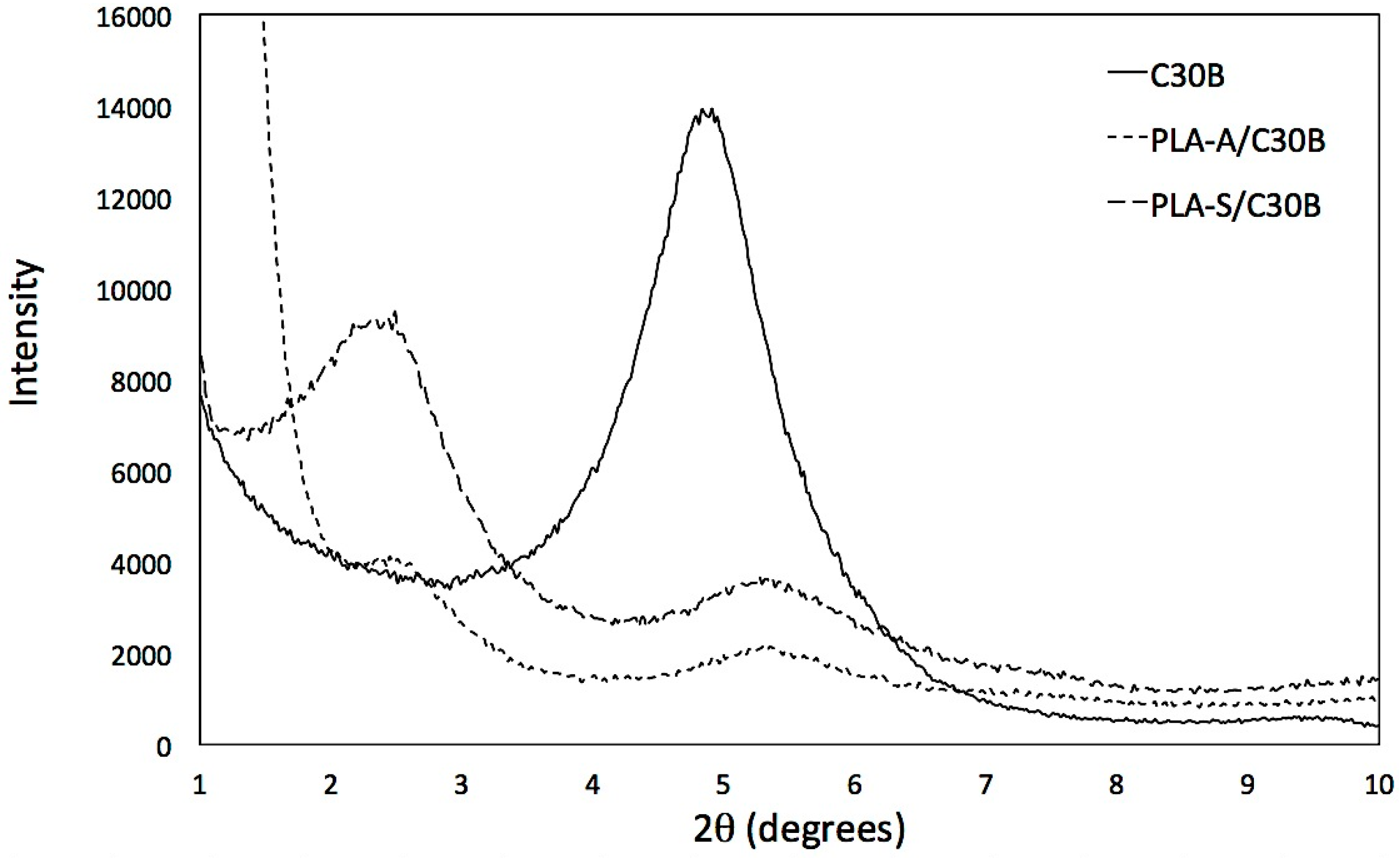 | PLA-A/C30B | 0 | 44.7 | 97.7 | 2.19 | PLA-S/C30B | 0 | 43.5 | 99.0 | 2.28 |