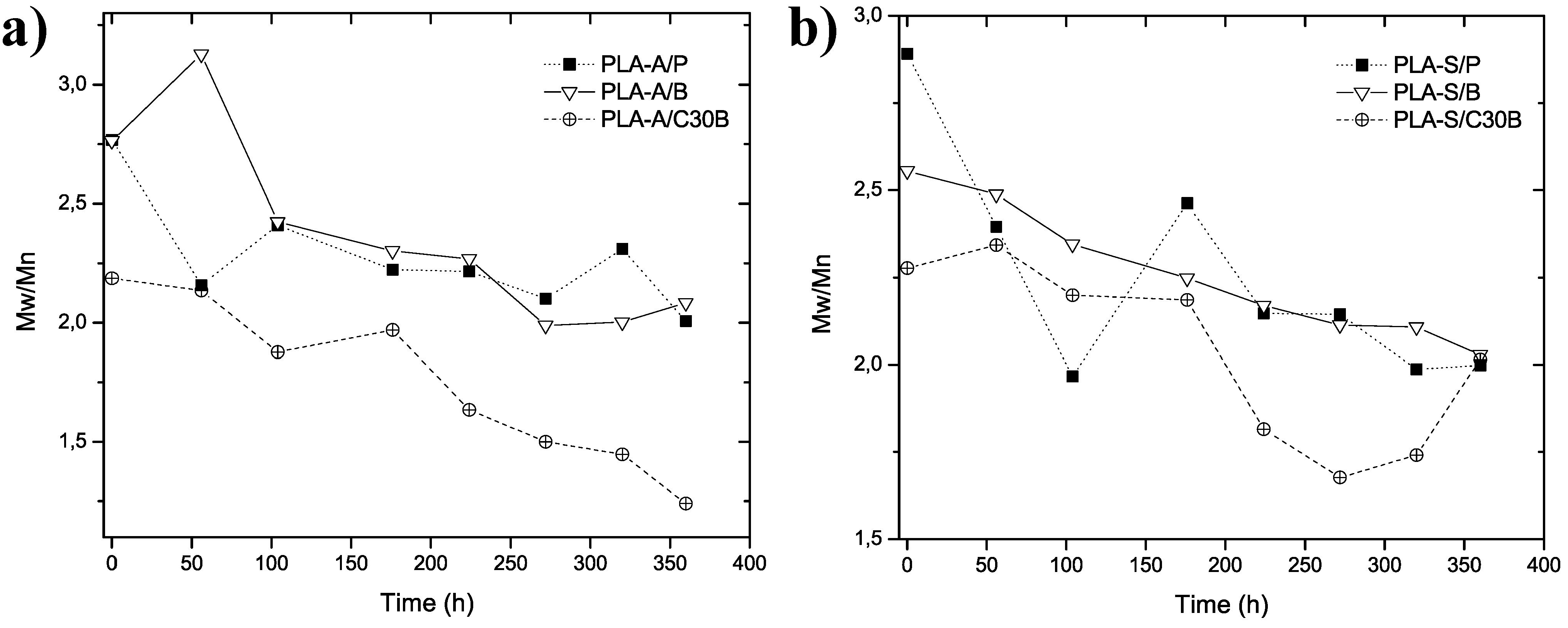 Effect of Artificial Weathering on PLA/Nanocomposite Molecular Weight Distribution