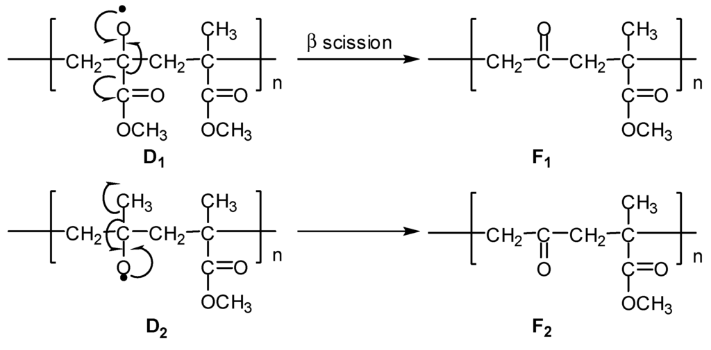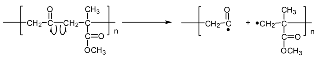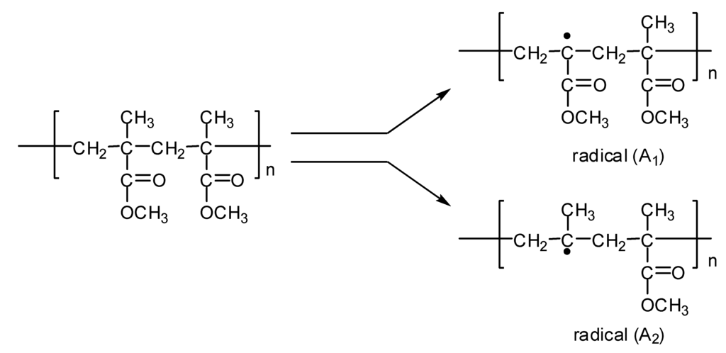 The PMMA photochemical degradation steps are summarized as shown below (Figure 2, Figure 3, Figure 4, Figure 5, Figure 6, Figure 7 and Figure 8):