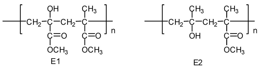 (5) The alkoxy radicals D1 and D2 further react via abstraction of the hydrogen atom to produce polymeric alcohols E1 and E2, respectively (Figure 6), or the β-scission reaction to produce ketonic polymers F1 and F2, respectively (Figure 7).