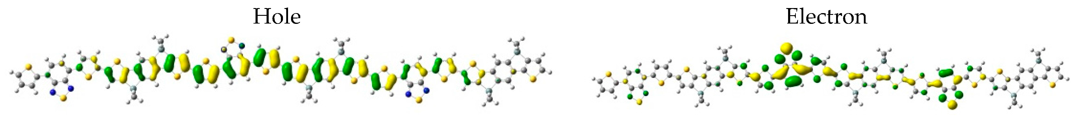 - Dimitrov, S.D.; Wheeler, S.; Niedzialek, D.; Schroeder, B.C.; Utzat, H.; Frost, J.M.; Yao, J.; Gillett, A.; Tuladhar, P.S.; McCulloch, I.; et al. Polaron pair mediated triplet generation in polymer/fullerene blends. Nat. Commun. 2015, 6, 6501. [Google Scholar] [CrossRef] [PubMed]