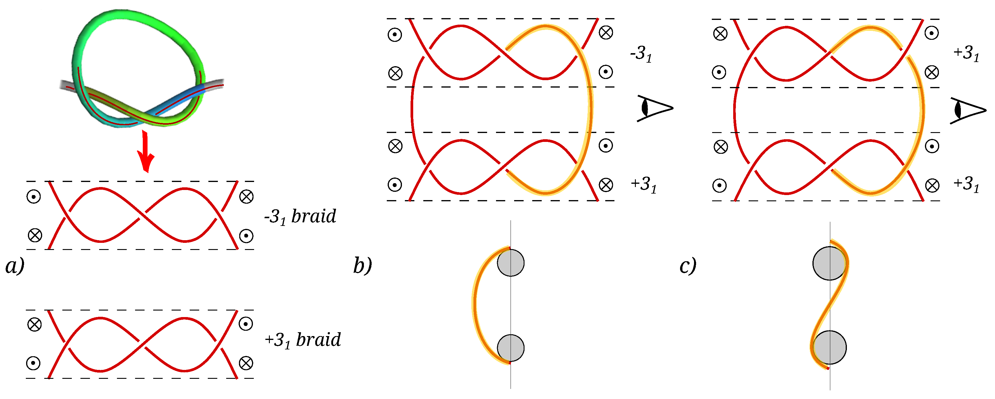 - Trefz, B.; Siebert, J.; Virnau, P. How molecular knots can pass through each other. Proc. Natl. Acad. Sci. USA 2014, 111, 7948–7951. [Google Scholar] [CrossRef] [PubMed]