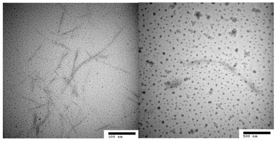 CNF or LCN was examined with a Hitachi H-600 transmission electron microscope (TEM, HITACHI, Tokyo, Japan) at an acceleration voltage of 80 kV. To examine the CNF or LCN, one droplet of 0.01% diluted suspension was put on a Cu grid. To enhance contrast in TEM, the CNF or LCN was negatively stained with a 2 wt % aqueous solution of phosphotungstic acid for 1 min.