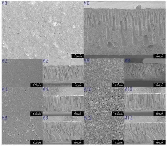 Generally, the water flux is influenced by the trade-off between two factors. One is the morphology, such as the pore size, distribution and thickness of skin layers and sub layers, and the other is the hydrophilicity of the membrane surface and matrix, which is related to the hydrophilic additives entrapped in the blend membranes [].
