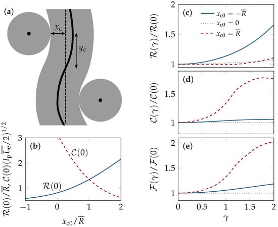 where and denote the collision coordinates for the unsheared solution. Following Reference [], we here set and used that , according to Equation (10). Besides the width of the tube, we characterize its conformation in terms of the mean curvature , defined through the average
