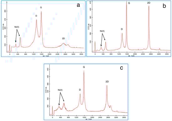 Raman spectra of (a) Ni/CNS; (b) Ni/CNS-FLG, and (c) Ni/CNS-MLG.