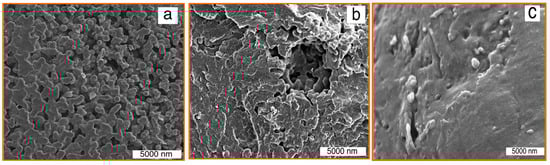 Therefore, regarding Figure 7b, the rough surface of the few-layered graphene sheets on the CNS surface led to a greater surface area, which proves the high interfacial adhesion between the nanofiller and polymer matrix. Moreover, the influence of using multi-layered graphene on the CNS surface as a nanofiller on the interaction with the polymer matrix is shown in Figure 7c.