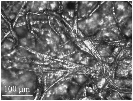Here, we employ the second approach, with paper as the microchannel layer, since it is highly porous and readily absorbs liquid between the cellulose fibers. Figure 1 shows the microstructure of the filter paper used in this work. It consists of interwoven cellulose fibers, touching in places and separated by a range of relatively large gaps in others.