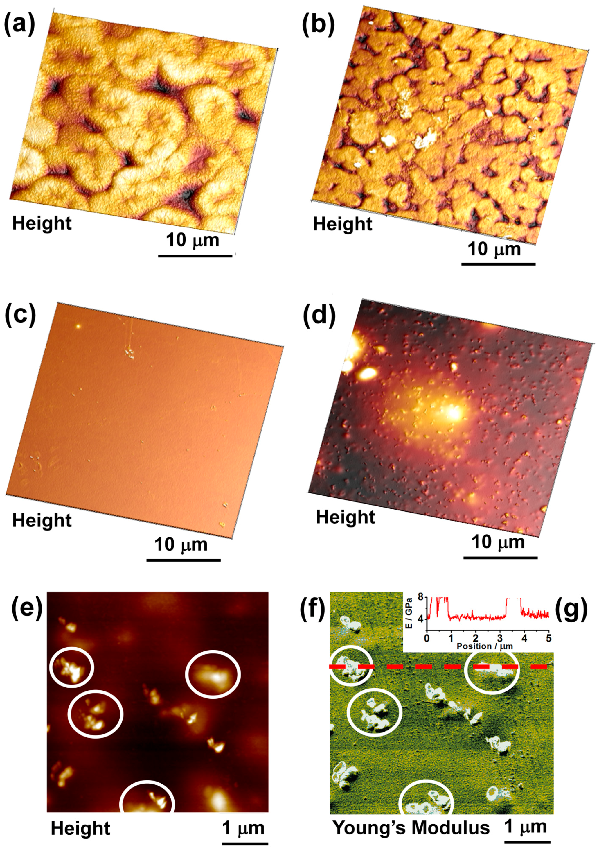 - Smolyakov, G.; Pruvost, S.; Cardoso, L.; Alonso, B.; Belamie, E.; Duchet-Rumeau, J. AFM PeakForce QNM mode: Evidencing nanometre-scale mechanical properties of chitin-silica hybrid nanocomposites. Carbohydr. Polym. 2016, 151, 373–380. [Google Scholar] [CrossRef] [PubMed]