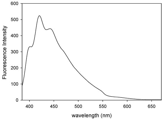Fluorescence spectroscopy was used for recording the fluorescence emission spectrum of the methanol-swollen network. The vibronic structure of the network provided in Figure 3 resembled that of the anthracene fluorophore [,] and of the previously reported pAnMMA linear homopolymer analogue [].