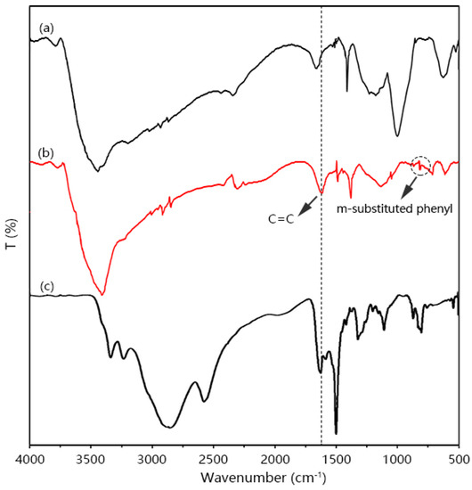 Fourier-transform infrared (FT-IR) spectra of (a) PIPD; (b) PIPD-DAB; and (c) DAB.