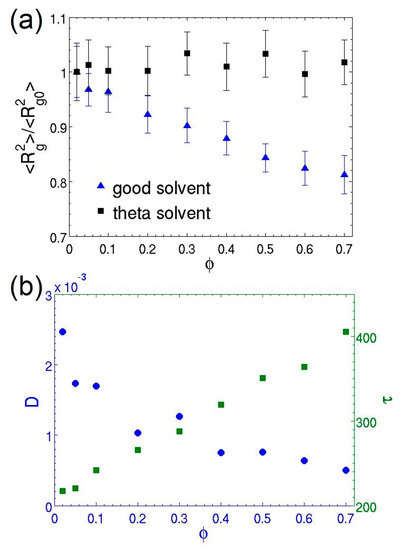 - Jiang, W.; Huang, J.; Wang, Y.; Laradji, M. Hydrodynamic interaction in polymer solutions simulated with dissipative particle dynamics. J. Chem. Phys. 2007, 126, 044901. [Google Scholar] [CrossRef] [PubMed]