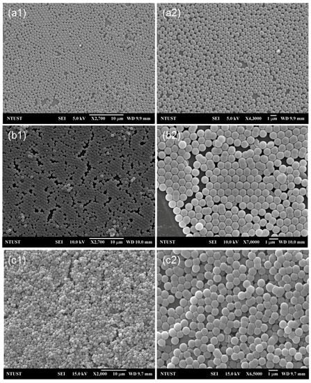 - Zhang, J.T.; Wang, L.; Lamont, D.N.; Velankar, S.S.; Asher, S.A. Fabrication of large-area two-dimensional colloidal crystals. Angew. Chem. Int. Ed. 2012, 51, 6117–6120. [Google Scholar] [CrossRef] [PubMed]