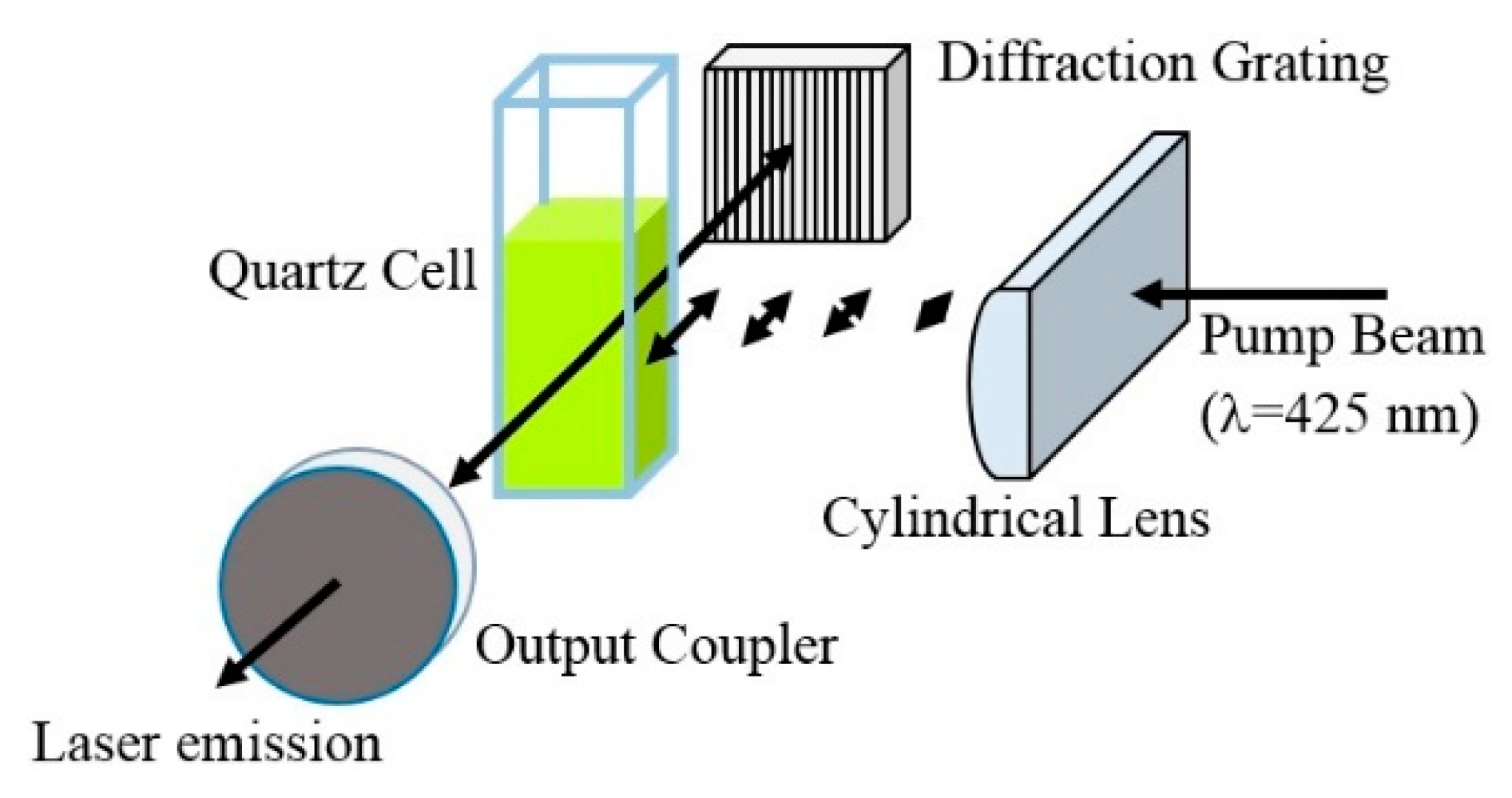 - Terada, M.; Muto, J. Concentration dependent laser threshold of rhodamine 6G in methanol solution. Opt. Comm. 1986, 59, 199–201. [Google Scholar] [CrossRef]