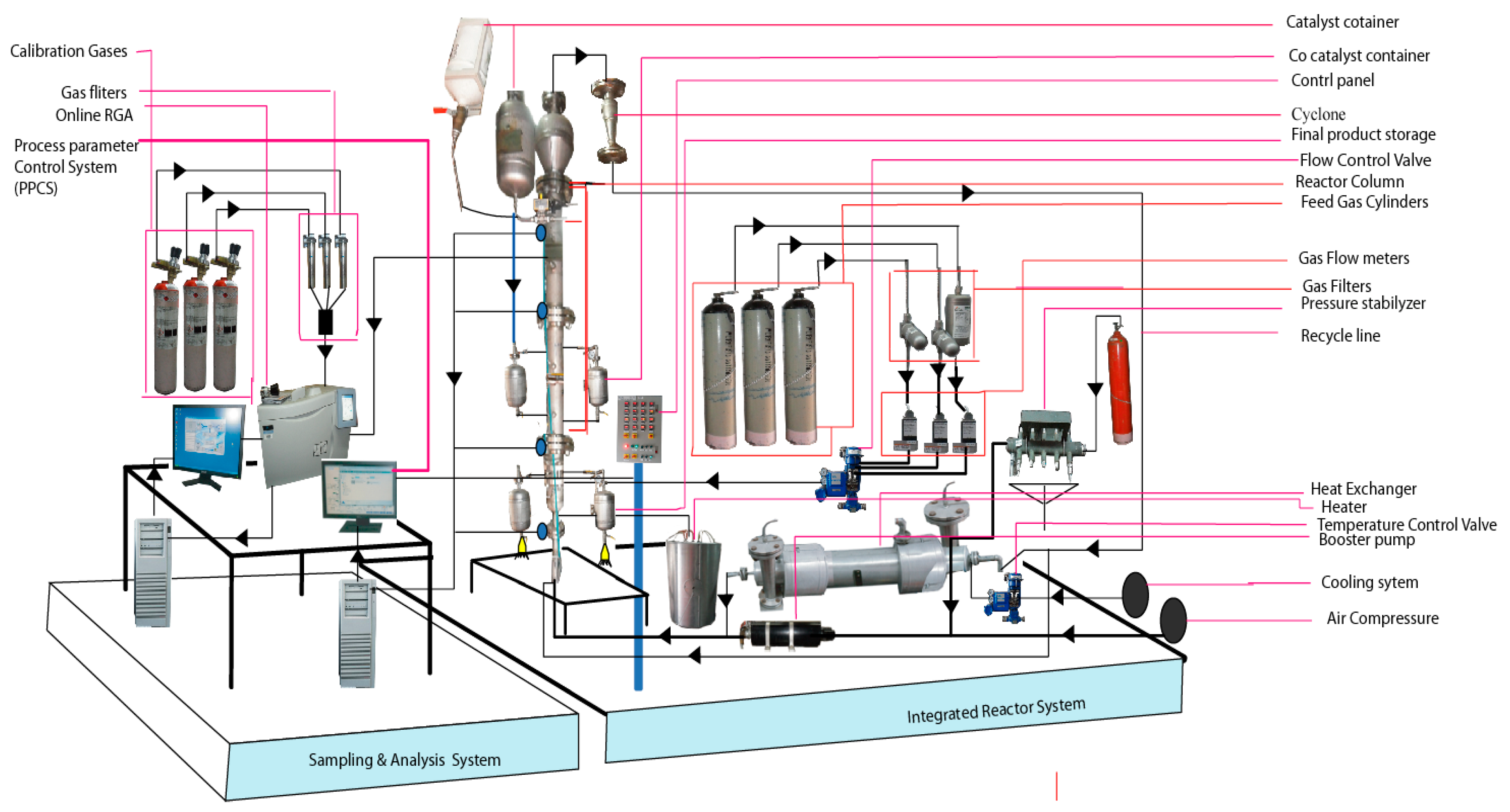 Sampling and analysis system integrated with a pilot scale fluidised bed catalytic reactor.