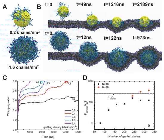 - Van Lehn, R.C.; Alexander-Katz, A. Fusion of ligand-coated nanoparticles with lipid bilayers: Effect of ligand flexibility. J. Phys. Chem. A 2014, 118, 5848–5856. [Google Scholar] [CrossRef] [PubMed]