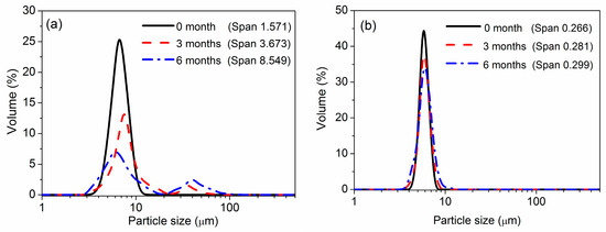where Dv,90%, Dv,50% and Dv,10% are the volume size diameters at 90%, 50% and 10% cumulative volumes, respectively. The smaller the span value indicates the narrower the size distribution.