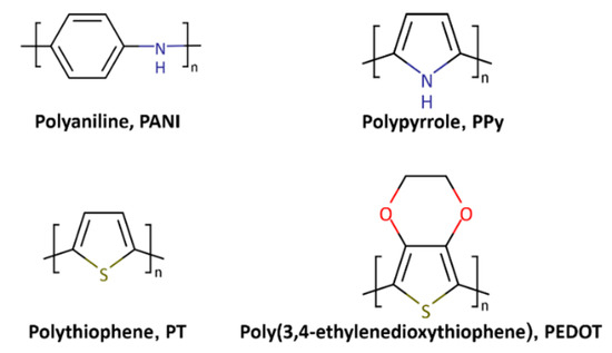 Polymers have advantages over metals or inorganic semiconductors, such as easy synthesis and processing, chemical and structural diversity, low weight, and flexibility. CPs have provided further advantages arising from the inherent π-electron-conjugated system, which has made it possible to develop many competitive applications in various fields, such as sensors, energy conversion/storage devices, and drug carriers.