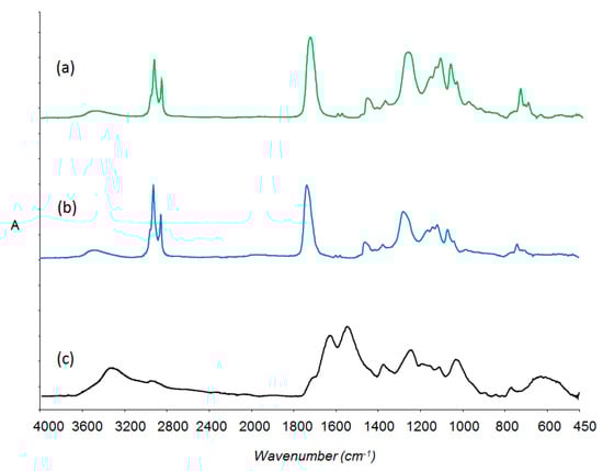 Infrared spectra of: (a) Neat alkyd; (b) Extracted core; and (c) PMUF shell.