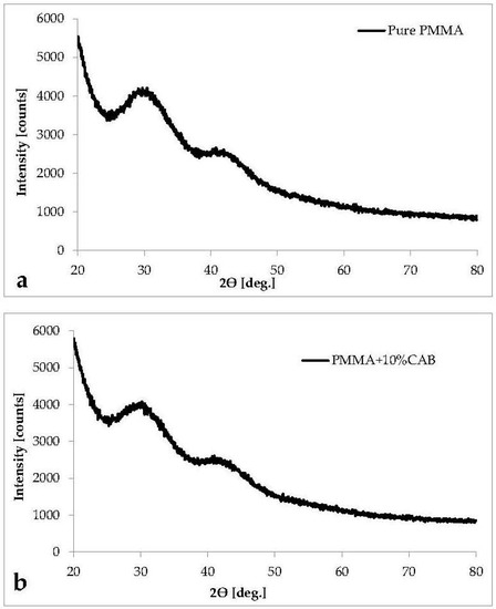 XRD pattern for: (a) pure PMMA, and (b) PMMA/10%CAB.