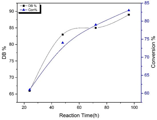 The reaction time vs. DB% and the reaction time vs. Conversion%.