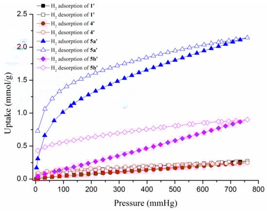 The H2 adsorption isotherms for 1’, 4’, 5a’, and 5b’.