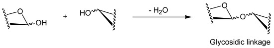 Polysaccharides are commonly present in nature and have been identified as vital materials for important in vivo functions [1]. These molecules are composed of monosaccharide residues linked together through glycosidic bonds, a type of covalent linkage that joins a monosaccharide residue at its anomeric position to another group, typically another saccharide moiety, such that it is structurally a result of dehydrative condensation between the components’ two hydroxy groups (Figure 1) [2,3,4]. Natural polysaccharides are constructed by a wide variety of monosaccharide repeating units linked through the different stereo- and region-types of glycosidic bonds, giving rise to quite complicated chemical structures. The structural diversity of polysaccharides leads to the provision of a whole range of biological functions, and a subtle change in their structure has a profound effect on the properties and functions of these molecules [5]. For example, two representative natural polysaccharides, cellulose and starch, are both composed of glucose repeating units, but are linked through stereo-oppositely β(1→4)- and α(1→4)-glucosidic bonds, respectively [6,7]. Owing to the differences in the stereochemistry of the linkages between the same glucose repeating units, the roles of cellulose and starch in nature are completely different, such that, the former is a structural material and the latter acts as an energy provider as a component of starch, respectively. The precise synthesis of structurally well-defined polysaccharides composed of stereo- and regio-controlled glycosidic linkages has therefore attracted much attention in carbohydrate and materials sciences in the development of new functional bio-related materials.