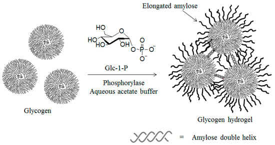 - Izawa, H.; Nawaji, M.; Kaneko, Y.; Kadokawa, J. Preparation of glycogen-based polysaccharide materials by phosphorylase-catalyzed chain elongation of glycogen. Macromol. Biosci. 2009, 9, 1098–1104. [Google Scholar] [CrossRef] [PubMed]
