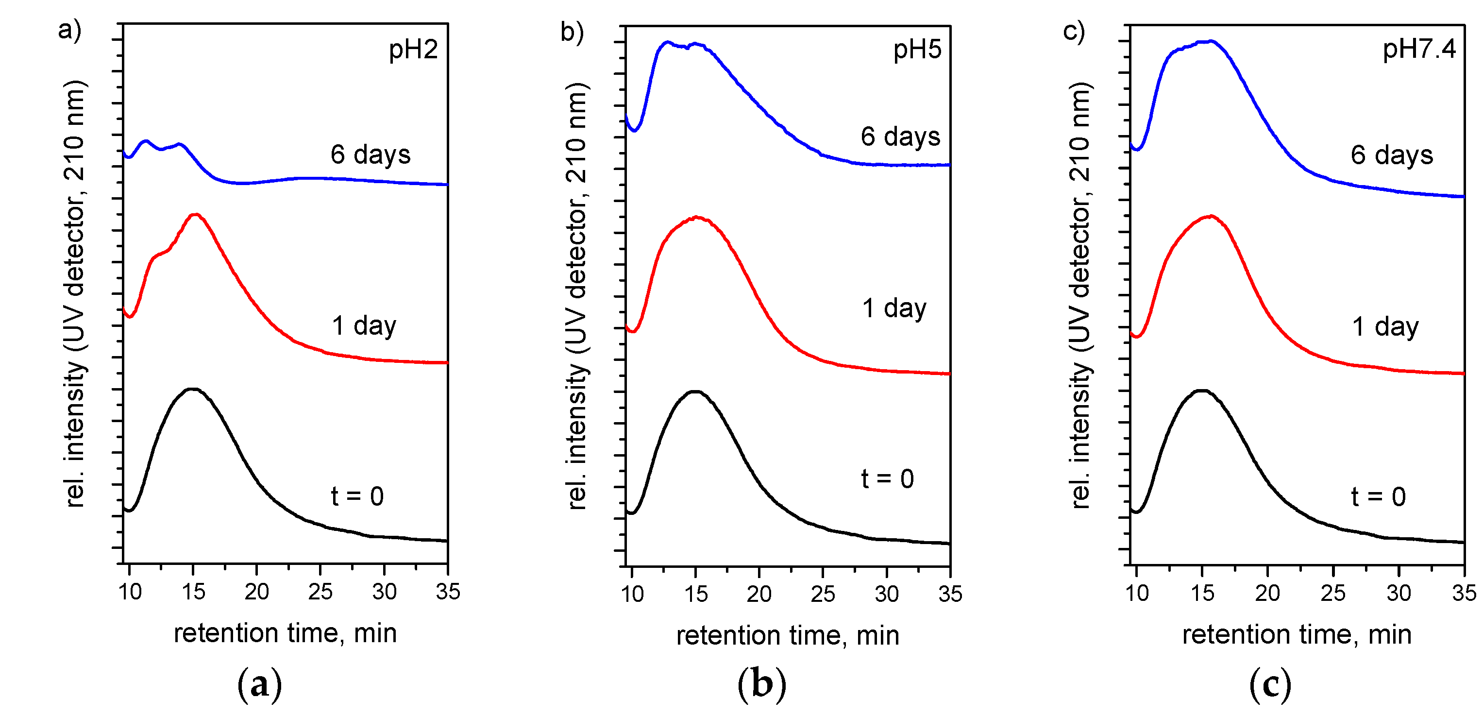 2.7. Hydrolytic Degradation Study—Dynamic Light Scattering