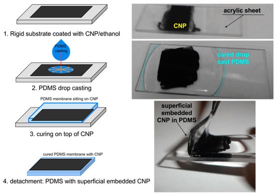 Adapted preparation method for superficially embedded CNPs in PDMS membranes.