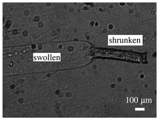 - Hirokawa, Y.; Tanaka, T. Volume phase transition in a nonionic gel. J. Chem. Phys. 1984, 81, 6379–6380. [Google Scholar] [CrossRef]