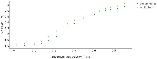 where refers to the mass transfer from the i phase to the j phase. By default, the source term on the right side of the equation would always be = 0; however, it could also be stipulated by the constant value or by the user-defined mass source value for every phase particulate loading (), which also affects the phase interactions. Particulate loading can be defined as the emulsion phase’s mass density ratio to the mass density ratio for the bubble phase: