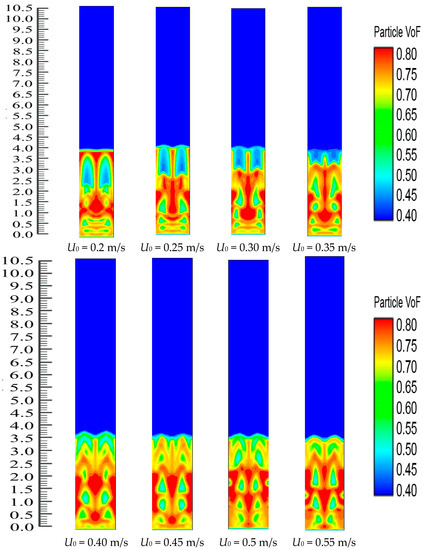 - Li, Z.; van Sint Annaland, M.; Kuipers, J.; Deen, N. Effect of superficial gas velocity on the particle temperature distribution in a fluidized bed with heat production. Chem. Eng. Sci. 2016, 140, 279–290. [Google Scholar] [CrossRef]