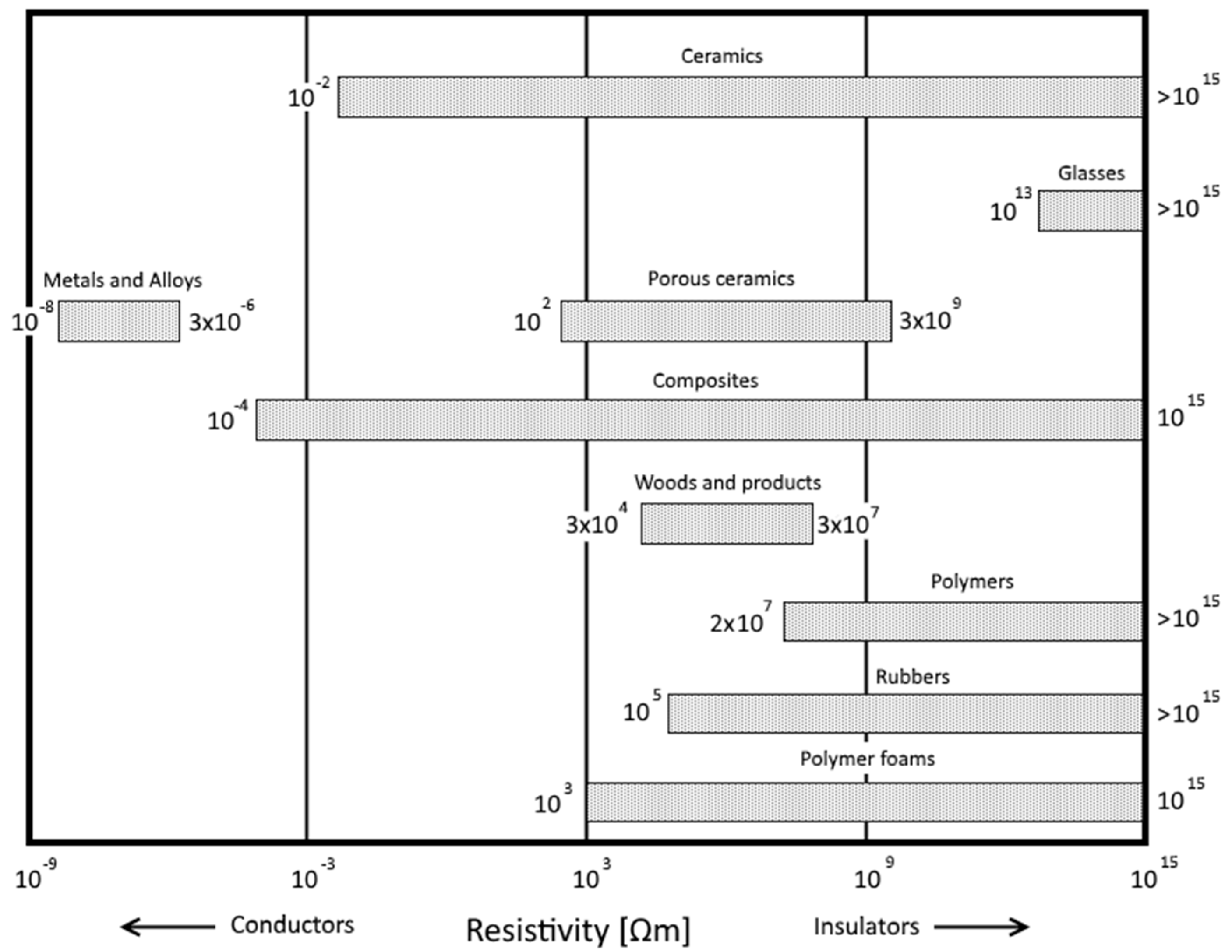 For all electrical and electronic applications, the material’s ability to insulate and protect the conductive circuit is of high importance for the safety and functional operation. Solid organic materials used in electrical engineering are paper, wood, wax, leather, as well as a number of natural and synthetic resins, rubbers, and polymers [1] (see electric resistivity chart in Figure 1). Since their introduction in the early 1970s, insulators built of polymer materials have been heavily used as suitable replacements for porcelain and glass insulators.