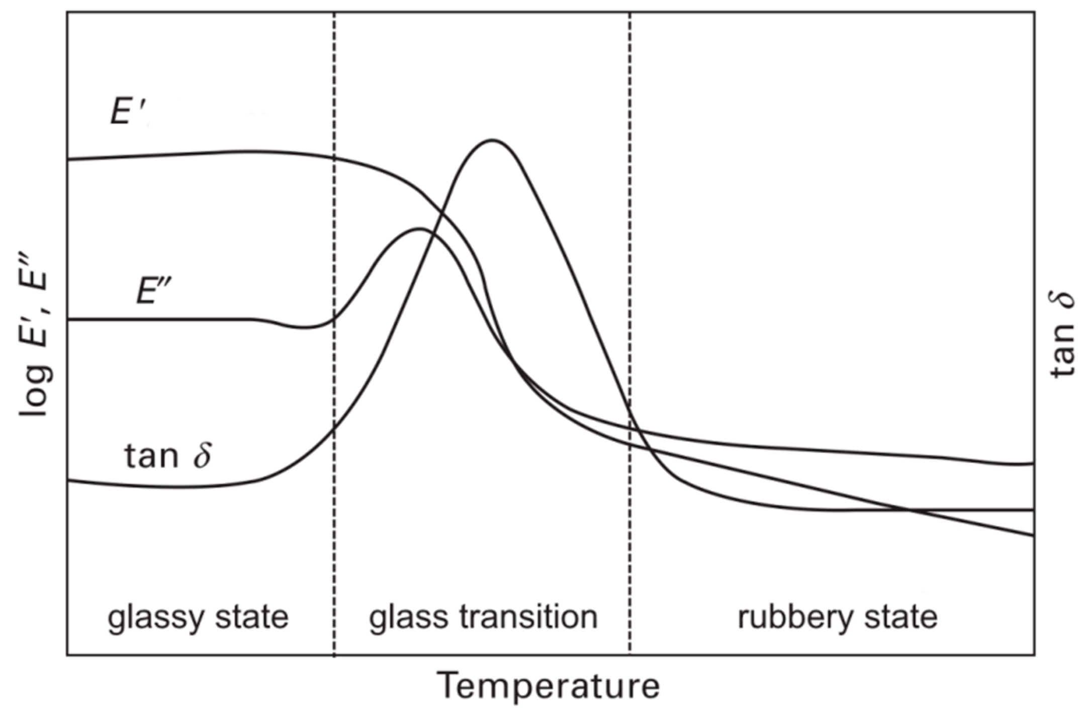 A typical dynamic mechanical analysis (DMA) curve of thermoset polymer.