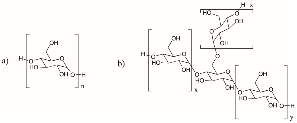 Chemical structure of (a) amylose; and (b) amylopectin.