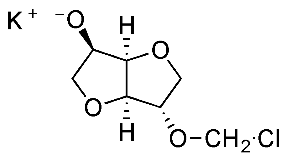 Representation of chemical structure of chloromethyl ether isosorbide intermediate.