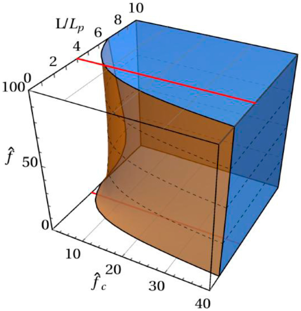 We go back to the stretch of tube-confined WLC, and consider the average extension of the chain in Equation (26). When the applied force f = 0, Equation (26) becomes
