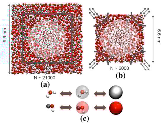 - Theodorou, D.N.; Suter, U.W. Geometrical considerations in model systems with periodic boundaries. J. Chem. Phys. 1985, 82, 955–966. [Google Scholar] [CrossRef]